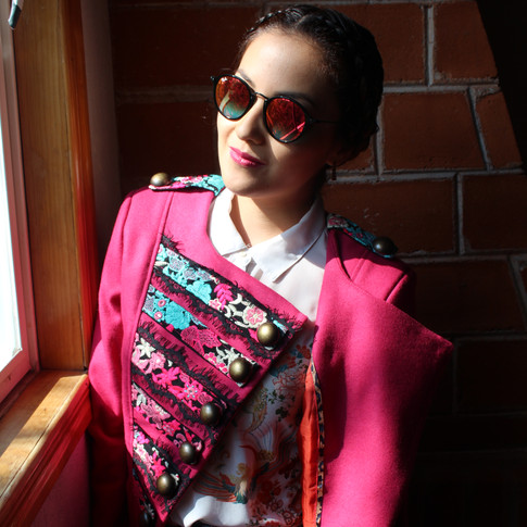 En cuanto a mi vestido, lo tuve que hacer un día antes y de manera express, porque si bien sabemos "en casa de herrero, cuchillo de palo". Mi outfit consistió en una falda vaporosa con un crop top de manga larga y cuello alto hecho de guipure en color bugambilia, muy acertado para el clima pues hacía viento lo cual permitió que mi falda luciera. ¿Qué les parece?...